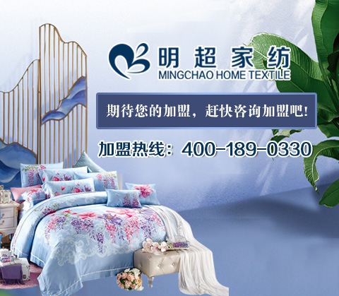 现在加盟明超家纺享 9大优惠加盟支持!免费获取详细加盟优惠政策、加盟条件、产品图册、投资详情资料,敬请留言或电话垂询。
