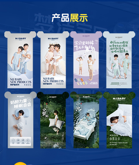M-J BABY,中文名:梦洁宝贝,创立于2006年,是梦洁集团下属子品牌,是国内首家专业针对0-16岁婴、幼儿及儿童青少年集设计、制造、销售为一体的高端家居品牌。