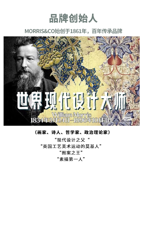 William Morris定义了整个维多利亚时期的室内装饰风格——细腻、浪漫、古典,他的名声享誉全球艺术节,作品被无数艺术家收藏。