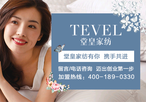 现在加盟堂皇家纺享9大优惠加盟支持!免费获取详细加盟优惠政策、加盟条件、产品图册、投资详情资料,敬请留言或电话垂询。